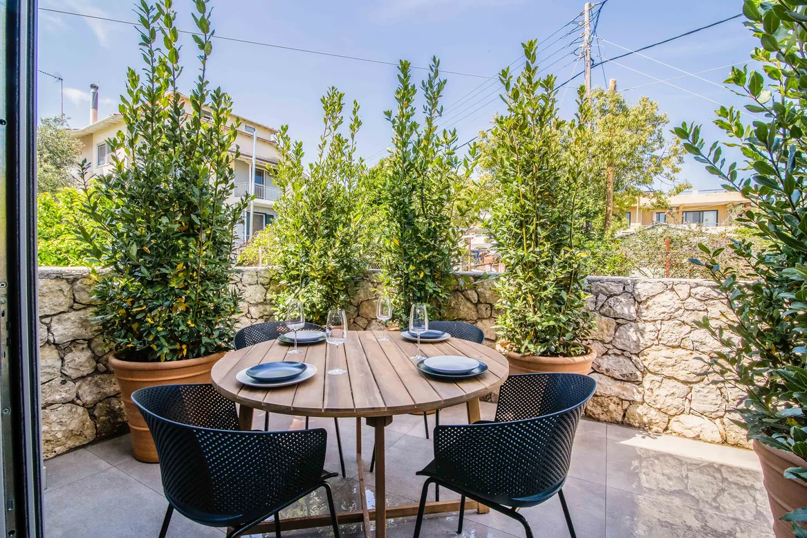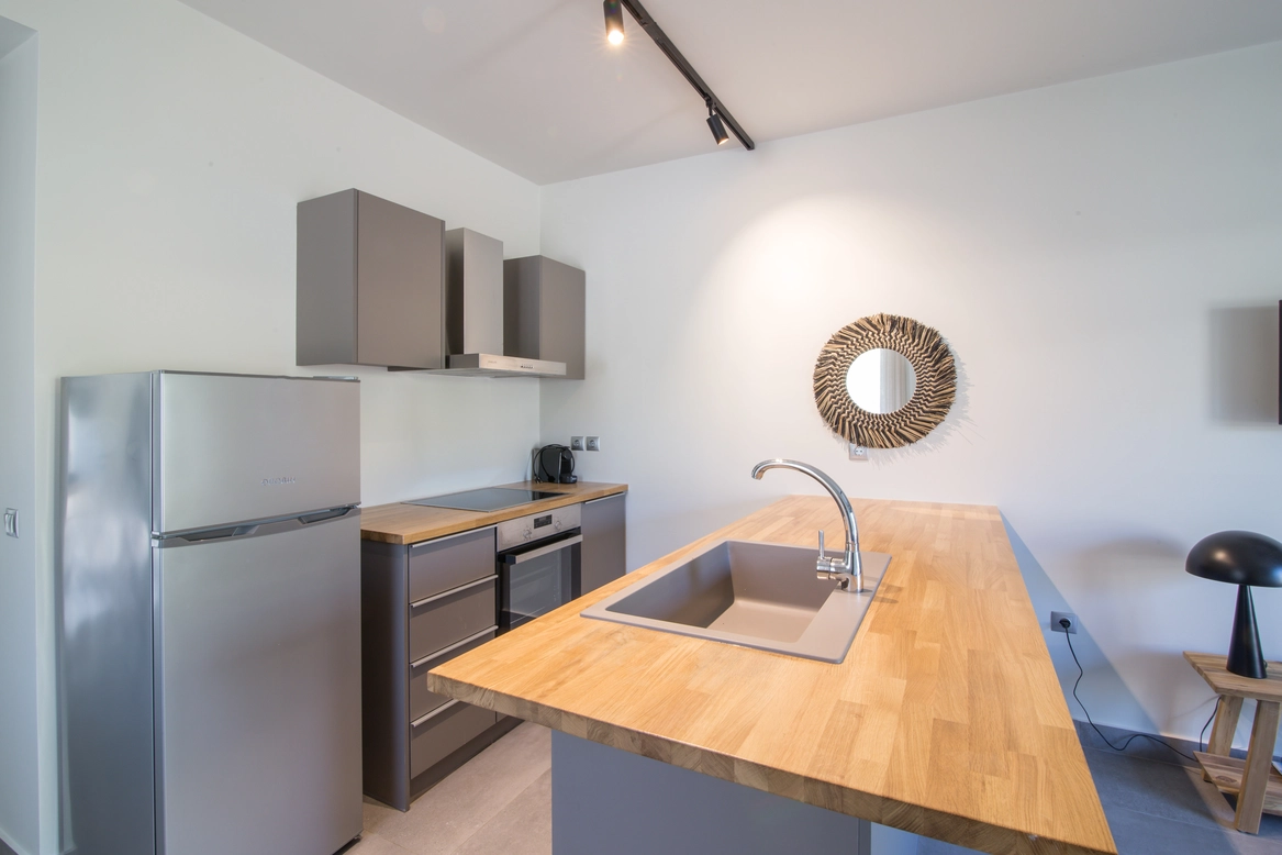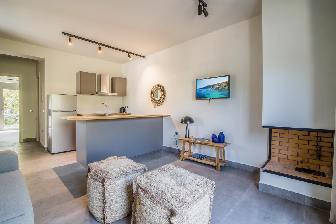 Enjoy your stay in a modern and beautifully decorated apartment with a view of our garden! This apartment consists of an open plan kitchen and living room! The kitchen is fully equipped with fridge, oven with hob as well as washing machine and dishwasher! There is even a nespresso coffee machine! The sofa in the living room can be converted into a bed and sleeps up to two people. In the bedroom there is a comfortable double bed. It has a private terrace with garden and mountain views! A place that exudes a sense of homely calm and relaxation is ready to welcome you!